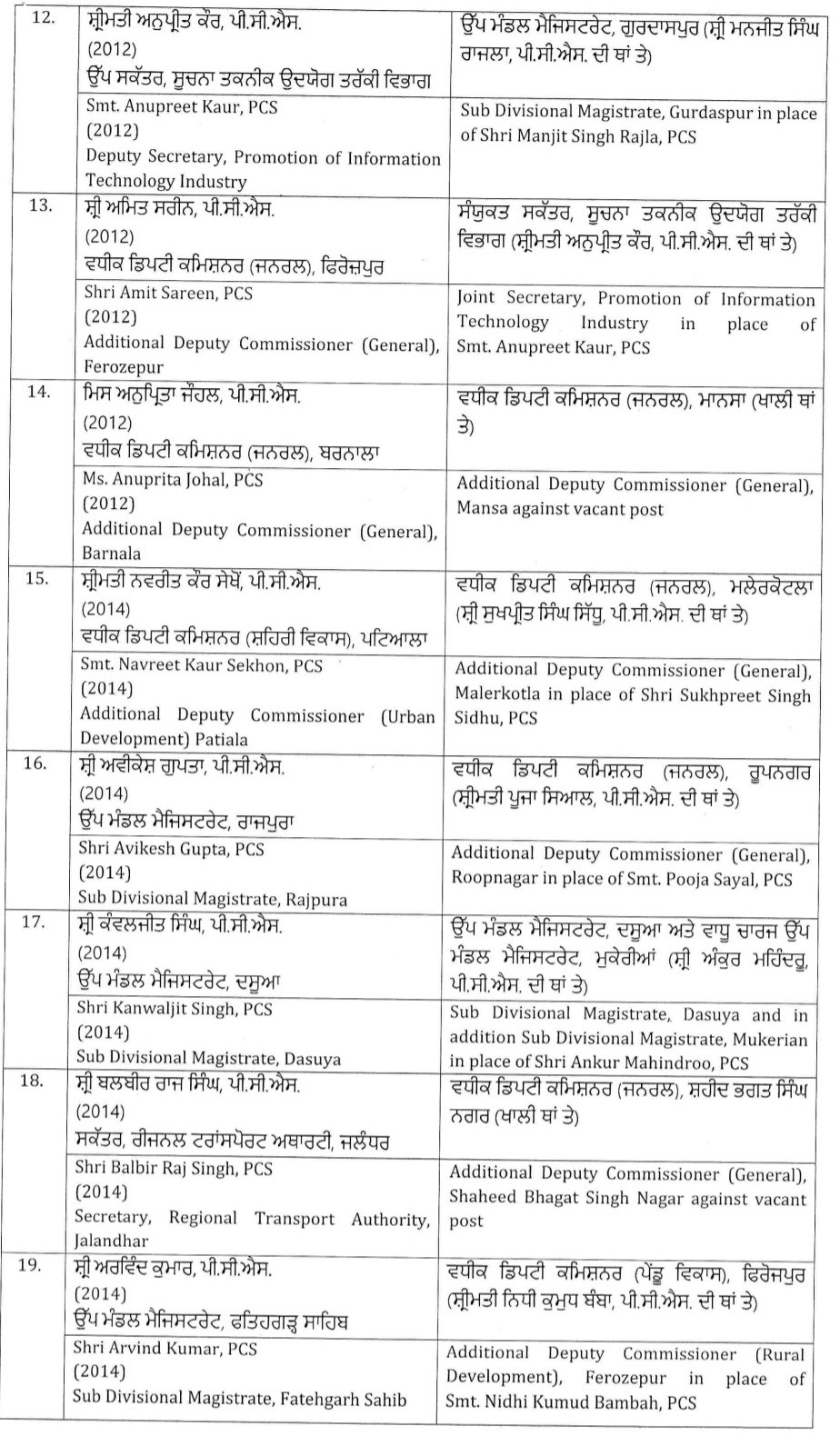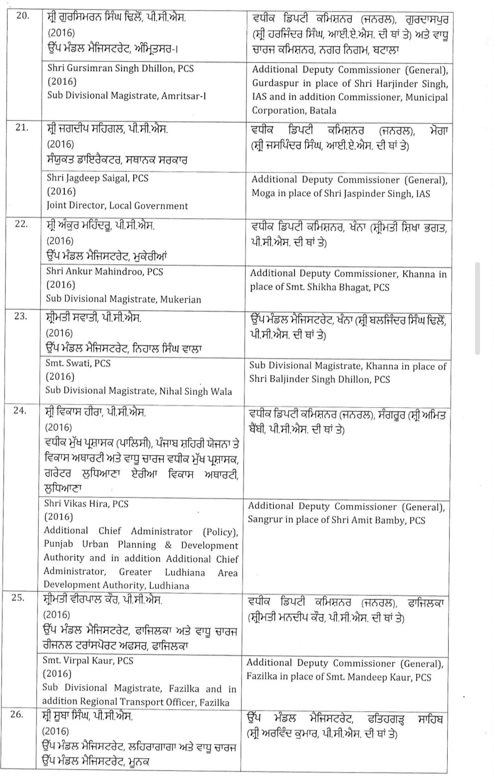 पंजाब सरकार ने शुक्रवार को बड़ा प्रशासनिक फेरबदल करते हुए 2 IAS और 57 PCS अधिकारियों के तबादले किए हैं। नई तबादला सूची के अनुसार कई महत्वपूर्ण विभागों और जिलों में अधिकारियों की तैनाती बदली गई है। सूत्रों के अनुसार, तबादले तत्काल प्रभाव से लागू होंगे और सभी अधिकारियों को जल्द से जल्द अपने नए पदभार संभालने के निर्देश जारी किए गए हैं।